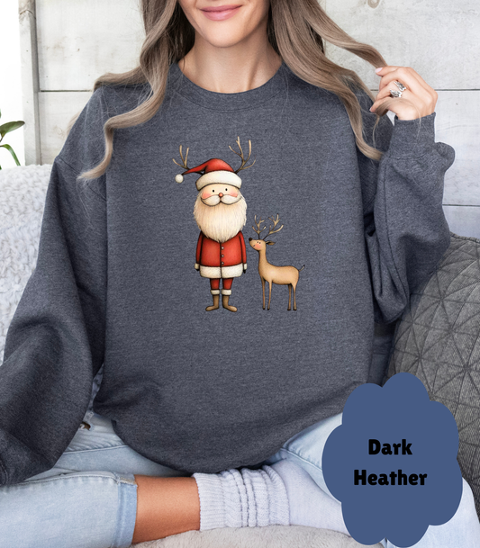 Cozy Santa & Reindeer Christmas Sweatshirt | Cute Coquette Holiday Sweater