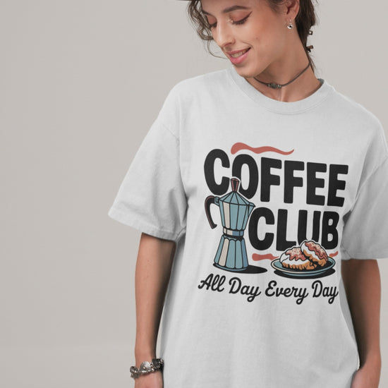 Coffee Club T-Shirt – Retro Coffee & Croissant Graphic Tee Gift for Coffee Lovers